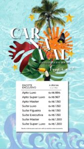 Durante o período carnavalesco, a pousada apresenta o Carnaval Tropical Guest House, com pacotes especiais de quatro diárias, a partir de 4x de R$ 884,00, incluindo café da manhã e estacionamento. Uma proposta pensada para quem busca conforto, praticidade e uma experiência única.